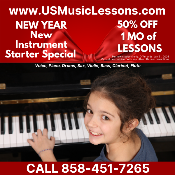 For a limited time, new students can kick off the year with 50% off their first month of private lessons at U.S. Music Lessons.